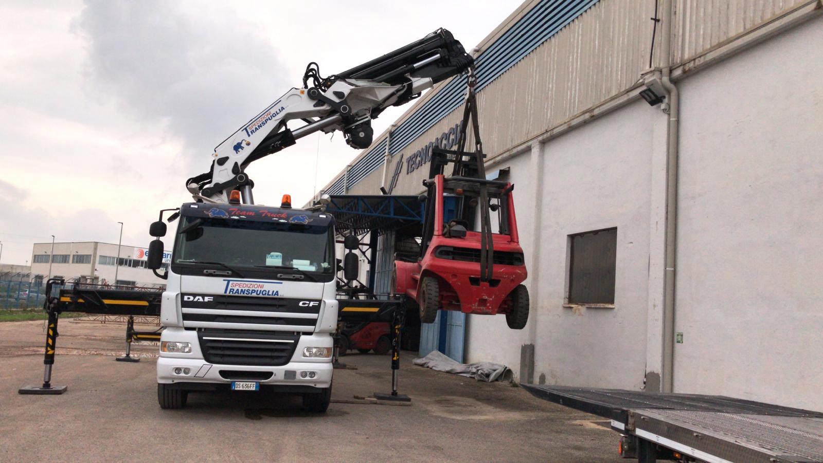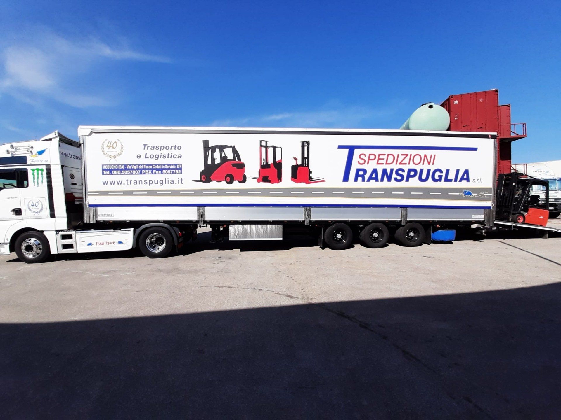 Da oltre 40 anni la nostra azienda Transpuglia assiste aziende e stabilimenti industriali con operazioni di trasporto e carico merci sicuri, puntuali e convenienti. Il nostro fornito parco mezzi dispone di automezzi centinati e semirimorchi con rampe specializzati nel trasporto di carrelli elevatori e autogru.